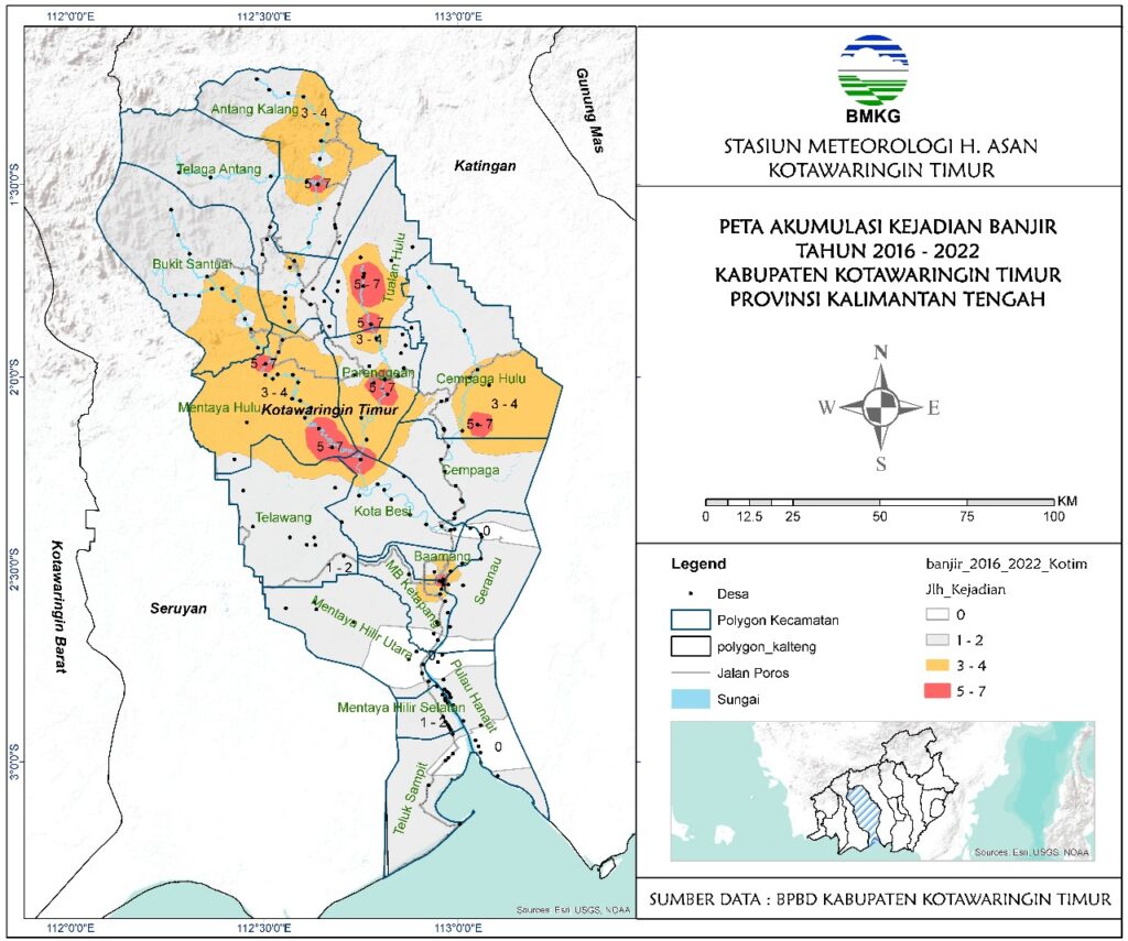 Peta Akumulasi Kejadian Banjir Tahun 2016 – 2022