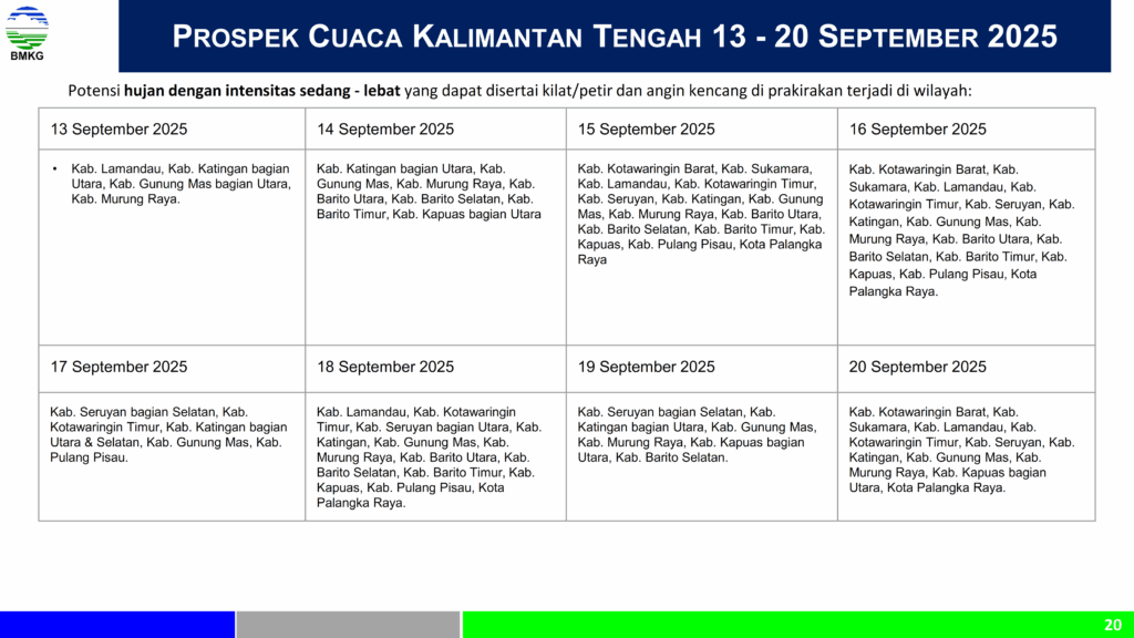 Berdasarkan peringatan dini yang di sampaikan oleh Balai Wilayah Sungai Kalimantan II dan Badan Metereologi dan Klimatotologi Geofisika, bahwa di dasarian 2 terjadi peningkatan curah hujan.